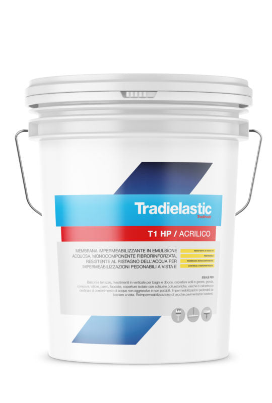 Membrana acrilica continua monocomponente in emulsione acquosa fibrorinforzata per l’impermeabilizzazione e protezione di balconi, terrazze, coperture piane pedonabili, resistente ai raggi U.V. ed al ristagno dell’acqua.