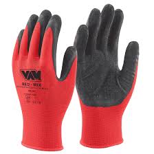 Guanti VAM RED MIX in poliestere con spalmatura in lattice crinkle idrorepellente. Offrono elasticità, resistenza all’abrasione e ottima presa grazie alla finitura sabbiata. Ideali per industria, manutenzione e giardinaggio, garantiscono comfort e protezione certificata EN 388:2016.