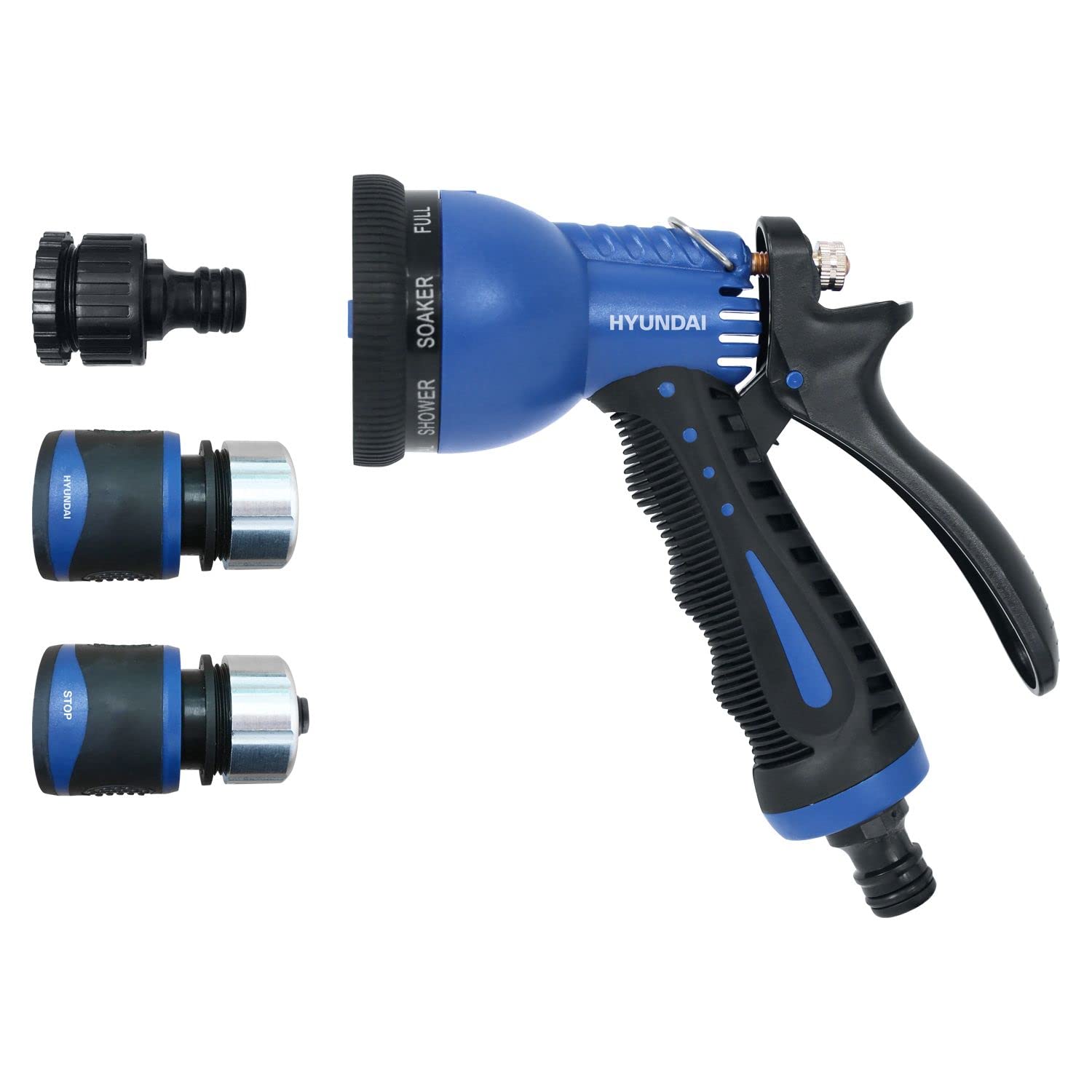 SET 4 PISTOLA IRRIGATRICE Hyundai cod.58751,8 funzioni, doccetta, ugello per tubo da giardino, irrigazione da giardino, 2 attacchi da 13/15 mm, attacco per rubinetto da 21/26,5 mm